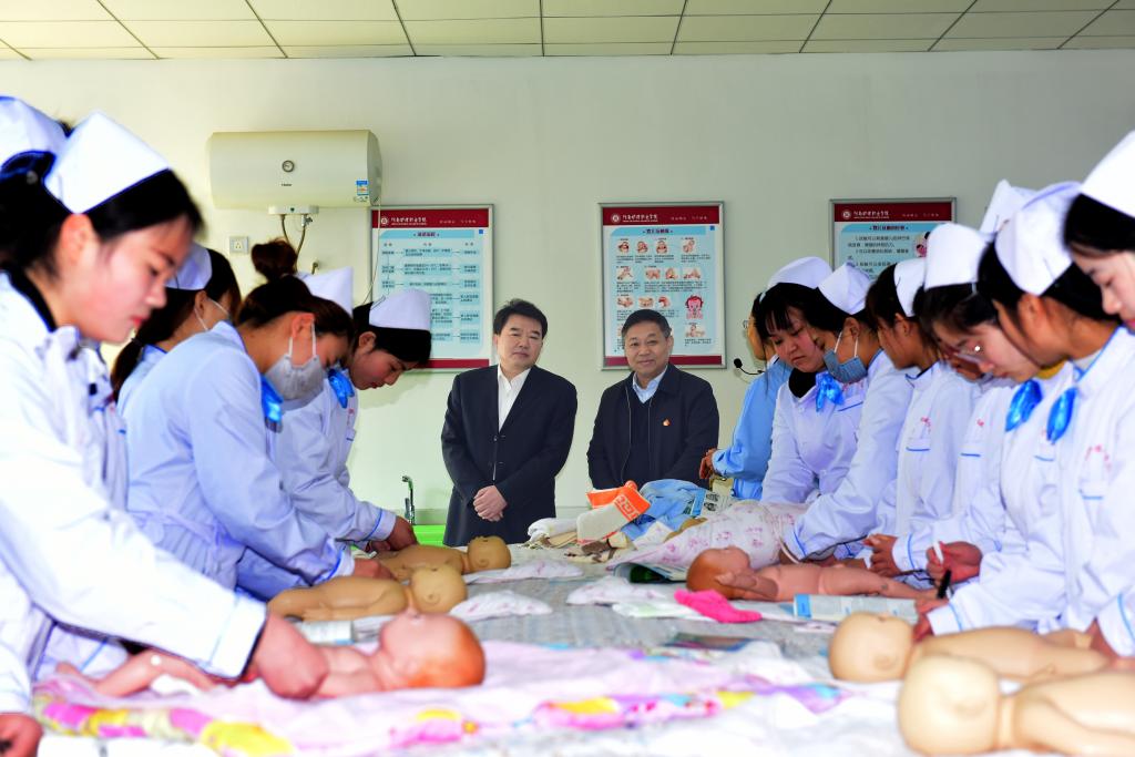 李市长表示学院整体发展前景非常好,随着国家对职业技能教育的重视,学院培养的学生契合了目前社会对高技能人才需求日益旺盛的发展趋势。另外对学院的管理方式、教风、学风、办学定位等给予了高度评价,在校园环境建设上提出了很好的建议。李市长希望:一是要进一步地办出特色,培养出更多的基层医生,缓解乡镇缺乏全科医生的现状;二是要继续扩大规模,提升教学质量,不断提高学院服务社会的能力;三是要加强基本建设,加快“升本”进程。李市长表示,市政府全力支持学院发展,同意将北面预留用地划拨给学院使用,李市长要求,高新区要尽快成立专门工作机构和学院对接协调,加快推进土地征购工作。李市长强调,新征土地规划要科学合理,不仅要与现有校区相结合,还要与洪河湿地公园景观带相结合,同时还要将王官屯村占地融入规划。