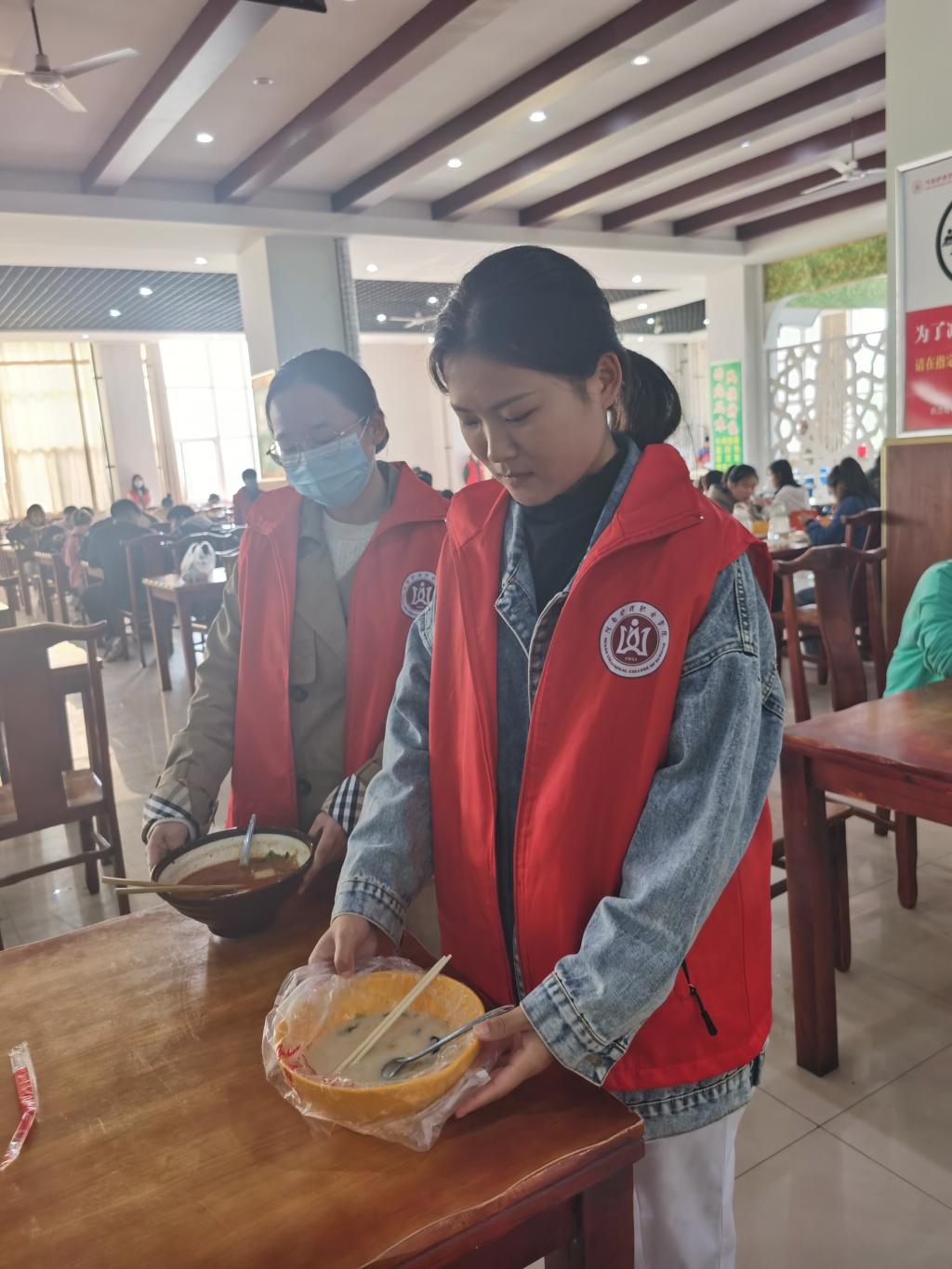 为倡导“光盘行动”,增强同学们的文明就餐意识,营造良好的就餐环境,我院学生会组织志愿者们在餐厅开展“文明就餐”活动。活动中,志愿者们积极参与食堂用餐秩序维护工作,对部分同学的不文明就餐现象进行引导纠正,帮助餐厅工作人员回收餐具、打扫餐桌。