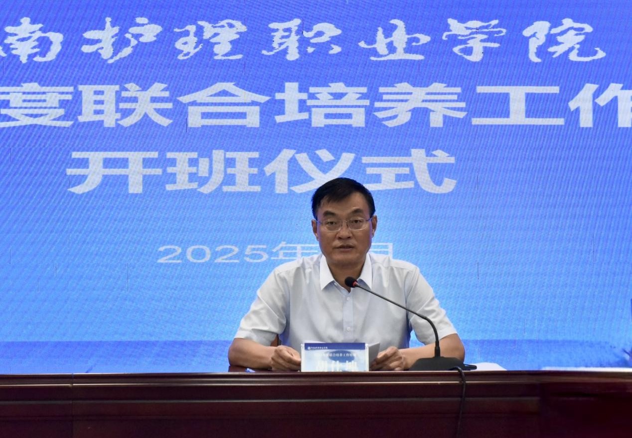 开班仪式上,胡仕坤首先向各联合培养单位的领导和代表表示热烈欢迎和衷心感谢,他结合当前医学教育面临的变革机遇,回顾了近年来我校在校企合作方面取得的丰硕成果,并提出五点要求与大家共勉:一是构建“五金”新体系,打造高水平专业群。要建设一批对接区域健康产业需求的“金专业”,开发一批融合“新技术、新工艺、新规范、新标准”的“金课程”,培育一支“能上讲台、能下临床”的“金师资”队伍,共建一批集“教学、培训、生产、研发”多功能为一体的“金基地”,编写一批“岗课赛证”融通的“金教材”。二是深化人才培养模式改革,增强服务发展能力。要强化实践教学,充分利用医院真实工作场景,培养学生的临床思维能力,将职业规划教育融入人才培养各环节,着力强化联合培养学生临床见习管理环节。三是加快数字化转型,赋能教学改革创新。要将人工智能等前沿技术深度融入教学过程,联合院校、企业,共建共享优质数字资源库。四是强化医学人文教育,培养德技并修人才。要强化价值引领与职业精神塑造,始终践行“五术”育人理念。五是强化安全管理,筑牢安全防线。要严把源头关,加强工作场所的安全隐患排查,织密过程网,强化学生见习和实习过程管理,拧紧思想阀,完善应急预案,定期开展安全教育。
