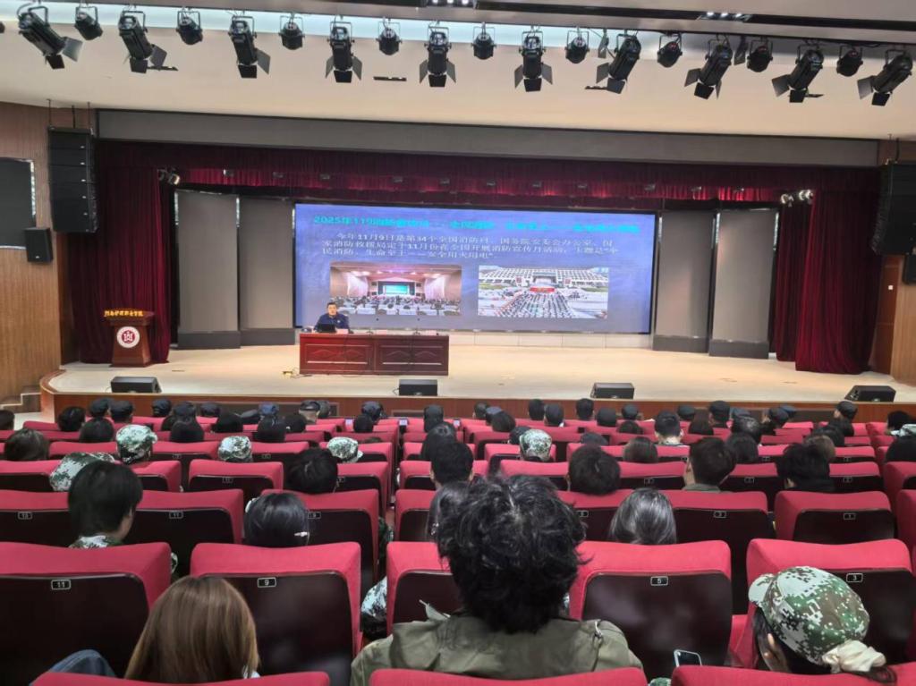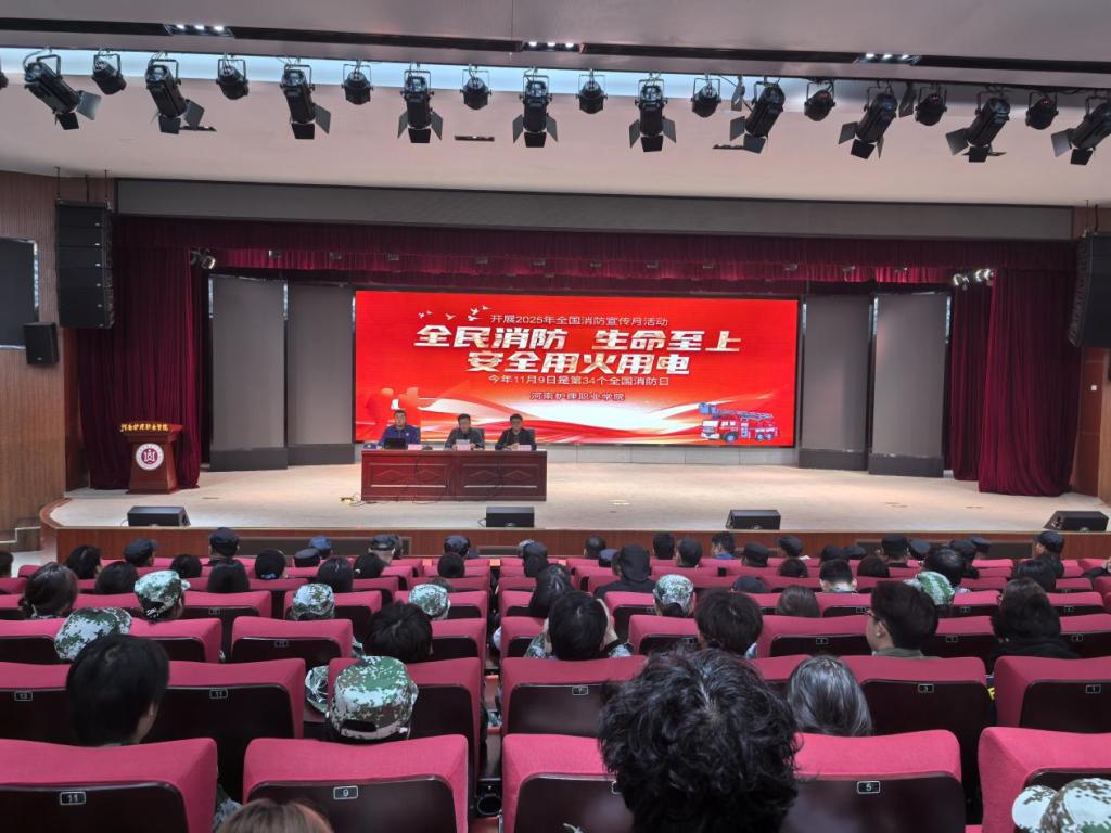 为响应全国“119消防宣传日”号召,深入推进学校消防安全工作,全面提升师生员工的消防安全素养与应急处置能力,11月5日下午,学校安全保卫处联合学生工作部举办以“全民消防、生命至上---安全用火用电”为主题的消防安全专题讲座。特邀安阳市高新区消防救援大队宣讲员李鸣担任主讲嘉宾,学校安全保卫处和学生工作部相关工作人员、安全信息员、保安队员、宿管员、水电班工人、餐厅人员以及2024级和2025级班长、学生安全信息员等共计800余人参加此次讲座。