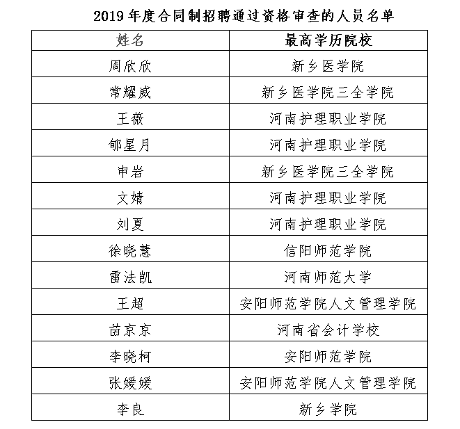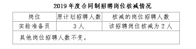 二、根据《河南护理职业学院2019年度公开招聘合同制工作人员实施方案》规定,实验准备员岗位通过资格审查人数未达到招聘方案要求,核减实验准备员岗位招聘人数,具体情况公布如下: